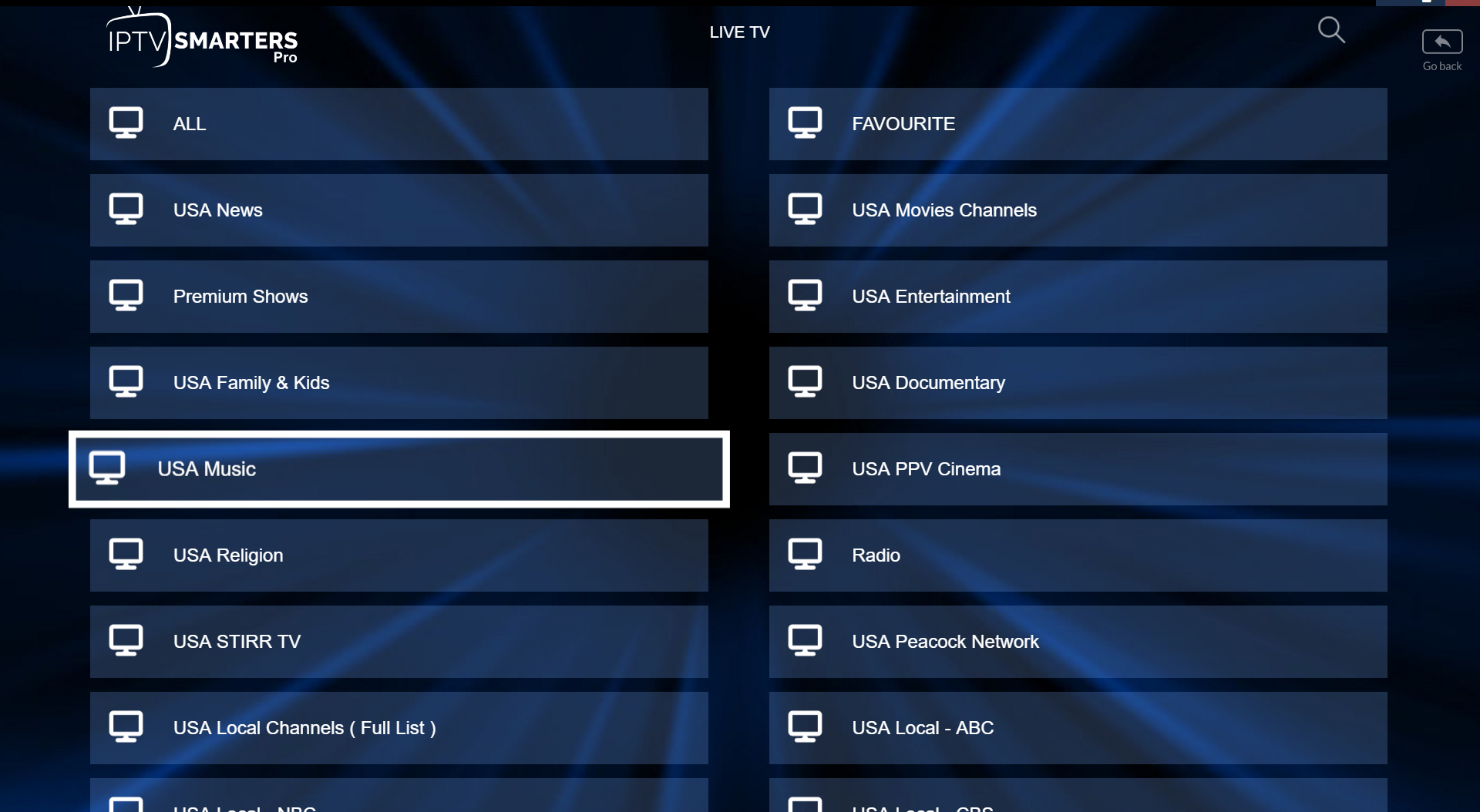 Now click on the “Live TV” icon, select channels group then the channel you want to watch.